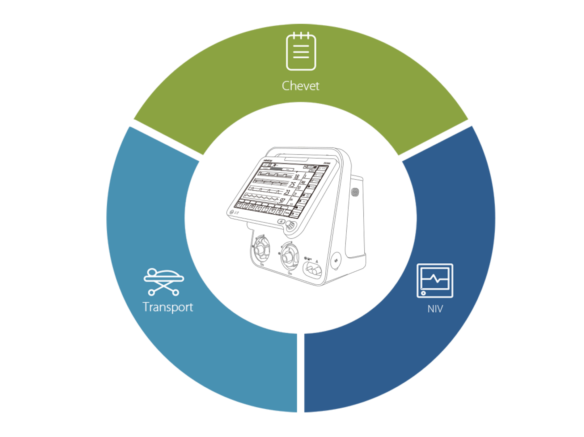 De uitgebreide lijst van standaardvoorzieningen, waaronder de nieuwste vormen van beademing, maakt de SV300 geschikt voor alle niveaus van patiëntenzorg en in alle zorgsituaties, van het bed van de patiënt tot vervoer naar een ander punt van zorg..